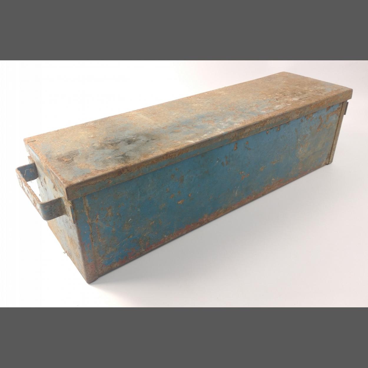 A HANDY 8vintage metal tool box with double handle and great patina W60xD16xH15cm approx