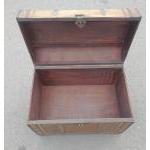 A rather attractive wooden storage trunk. Has pirate chest vibes but not for travelling. W70xD45xH56cm approx