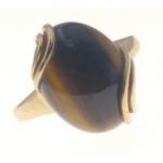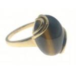 A ring set with a tiger stone approx 2cm long, stamped 375, size R, gross weight 4.77g approx