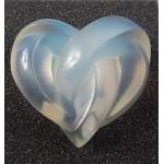 A 20th century LALIQUE opalescent heart-shaped paperweight (Lalique coeurs entrelaces opale) in original box, 7cm width approx