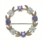 A 375 stamped yellow gold AMETHYST & PEARL round round brooch gross weight 5g approx -