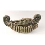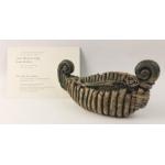 A LARA SCOBIE clay longship 22cm long, with gallery invite dated 1992. Signed and dated 1992.