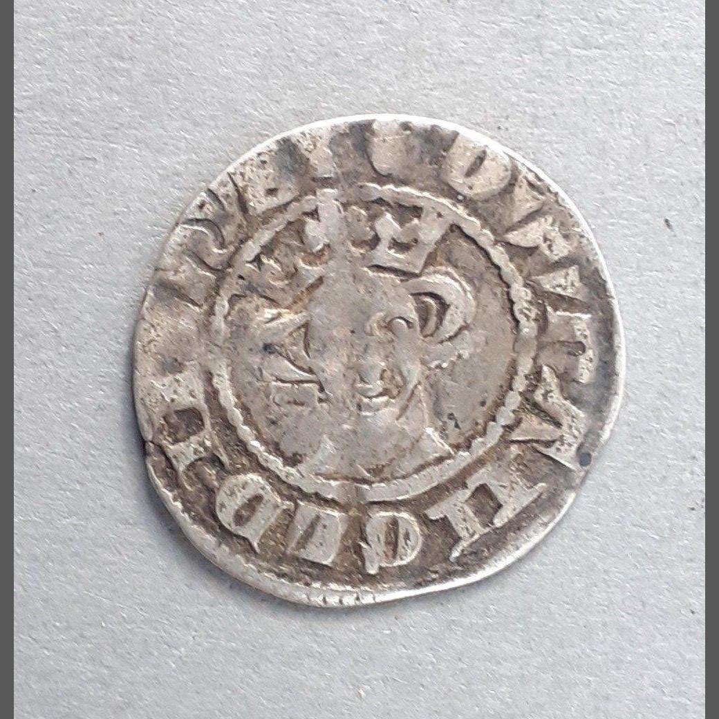 A small silver penny with cross and pellets, possibly Edward I