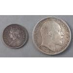 A 1862 quarter rupee in lovely collectable grade and a 1904 Edward VII 1 rupee coin in good grade