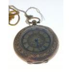 14k stamped ANTIQUE beautifully flora decorated high quaity case Gold pocket watch weight gross 34g approx including the mechanism - the watch comes with it's original winding key - this watch is in lovely condition