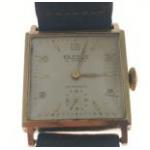 A CLASSY VINTAGE 9 375 stamped BERNEX Swiss Jewelled yellow cased gold wrist watch 27.02g gross(incl the leather strap) c1950s