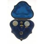 A part EDWARDIAN stud set - some in yellow metal but the jewellers EDWARDIAN boxis lovely with velvet and satin linings