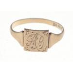 A 9ct stamped and engraved small yellow gold ring 0.90g approx