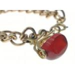 A 375 stamped gold chain and 375 stamped fob intaglio with a red stone - 38.5g approx (gross weight only for the red stone)