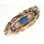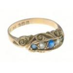 A 375 stamped yellow gold ring with blue stones and white stones inset - ring size O gross weight 3.1g approx