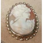 375 stamped yellow gold CAMEO brooch depicting a classical lady - gross weight 6.66g approx - dimensions 4cm x 3cm approx