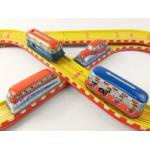 A part TECHNOFIX West German tinplate car track and 3 vehicles, all with wear and some wheels missing. Good for spares
