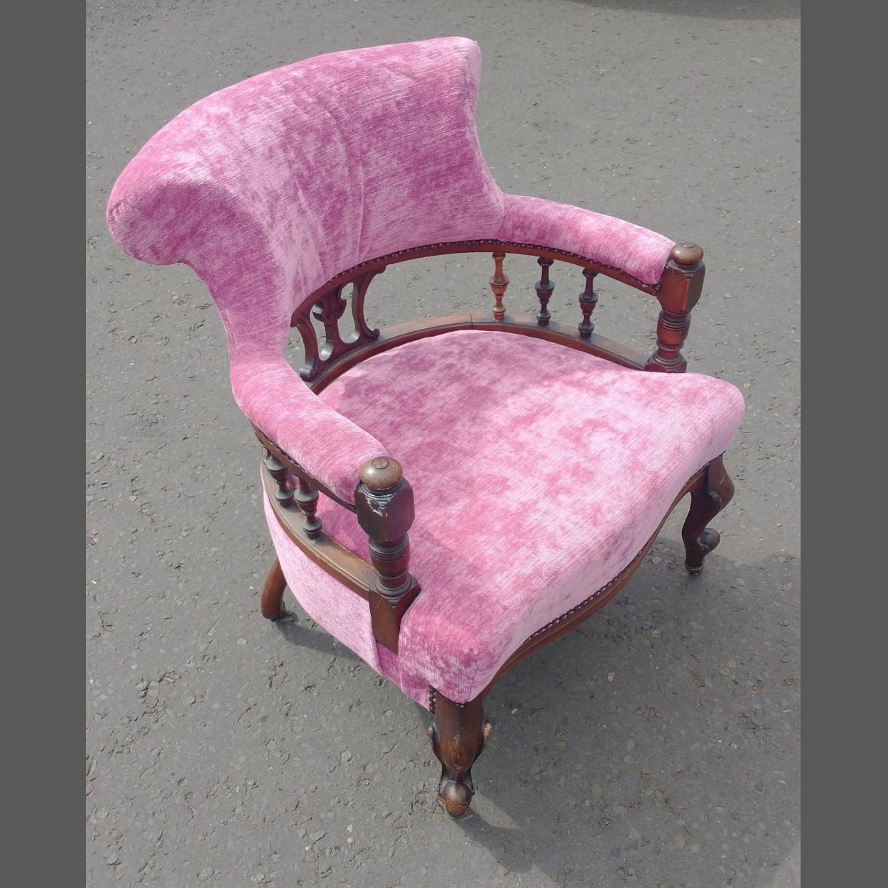 A second stylish pink velour bedroom chair on original ceramic castors standing 73cm to the top of the back and 35cm to the seat.