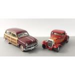 Two FRANKLIN MINT diecast models consisting of Boyd Coddingtons' Deuce Coupe, and a 1949 Ford Woody wagon. Without boxes but in nice condition