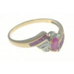 A ladies dress ring stamped 375, maker PAN, set with red centre stone and 4 matching small stones to the shoulders, size O, gross weight 2.1 g approx