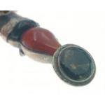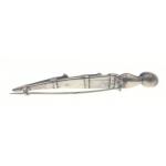 A large unmarked white metal Victorian Scottish dirk form kilt pin with semi-precious stones and a large Cairngorm (12mm) to the hilt and agates, length 10cm approx
