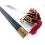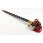 A substantial modern brass handled basket hilt sword with an 88cm blade. Complete in scabbard