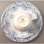 A RARE! AYNSLEY blue and white with gilt trim tea service comprising 12 cups, 12 saucers, 12 side plates, 2 sandwich plates, 1 large sugar bowl. Small crack in one side plate.