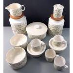 A mixed selection of HORNSEA pottery to include 1 biscuit barrel, a lidded jam pot, milk jug, 6 bowls, 1 flour bin, 6 cups (some with damaged handles), and 3 saucers