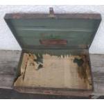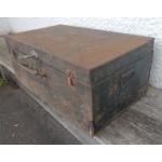 A handy military WWII Era foot locker / tin trunk. Marked ONSLOW. Cyril Onslow was a local Peebles bus driver and served in India. A well travelled trunk 1.66cm long, 37cm wide, 26cm deep approx.