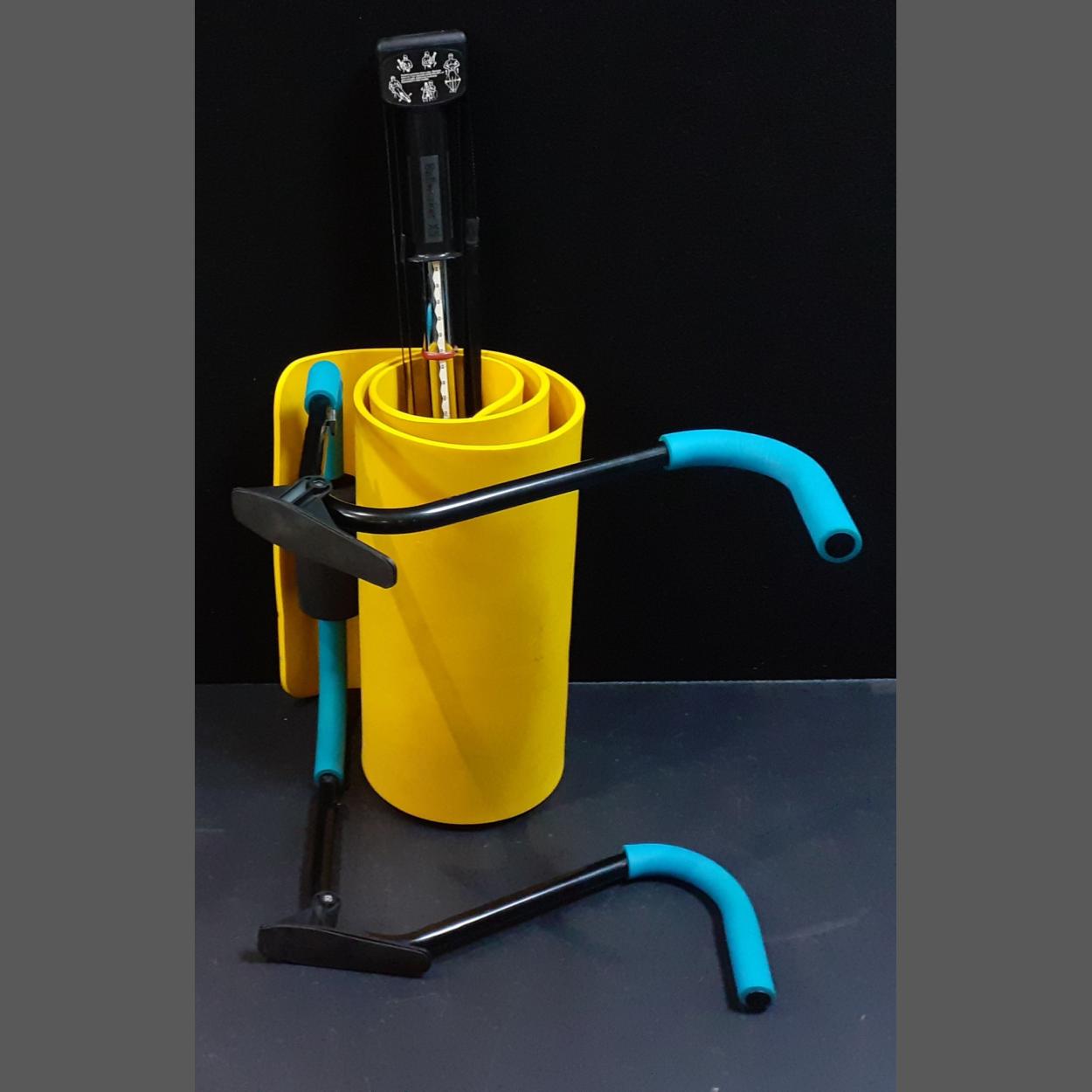 A BULLWORKER x 5 fitness muscle exerciser plus a sit-up machine and a yoga mat