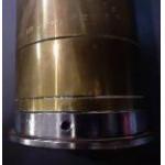 A LARGE military shell marked 1959. A massive 80cm tall, 15cm across at the base, with stamps. Clearly from a significant artillery piece, perhaps naval?