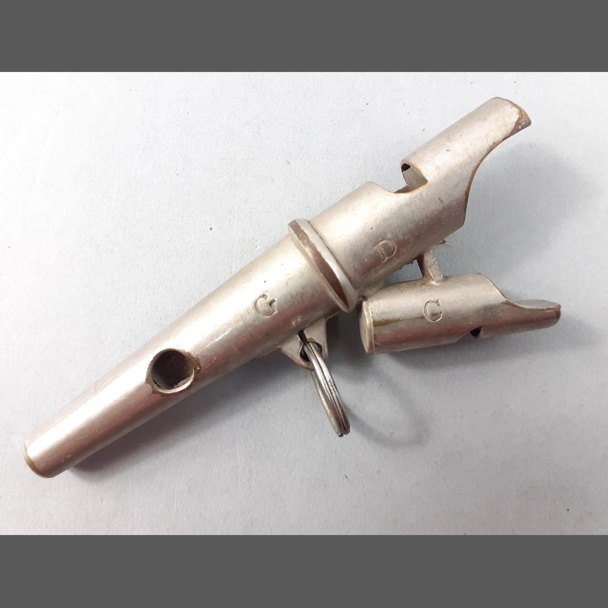 A most unusual 3 mouthpiece whistle in the keys of D and G, made in England
