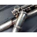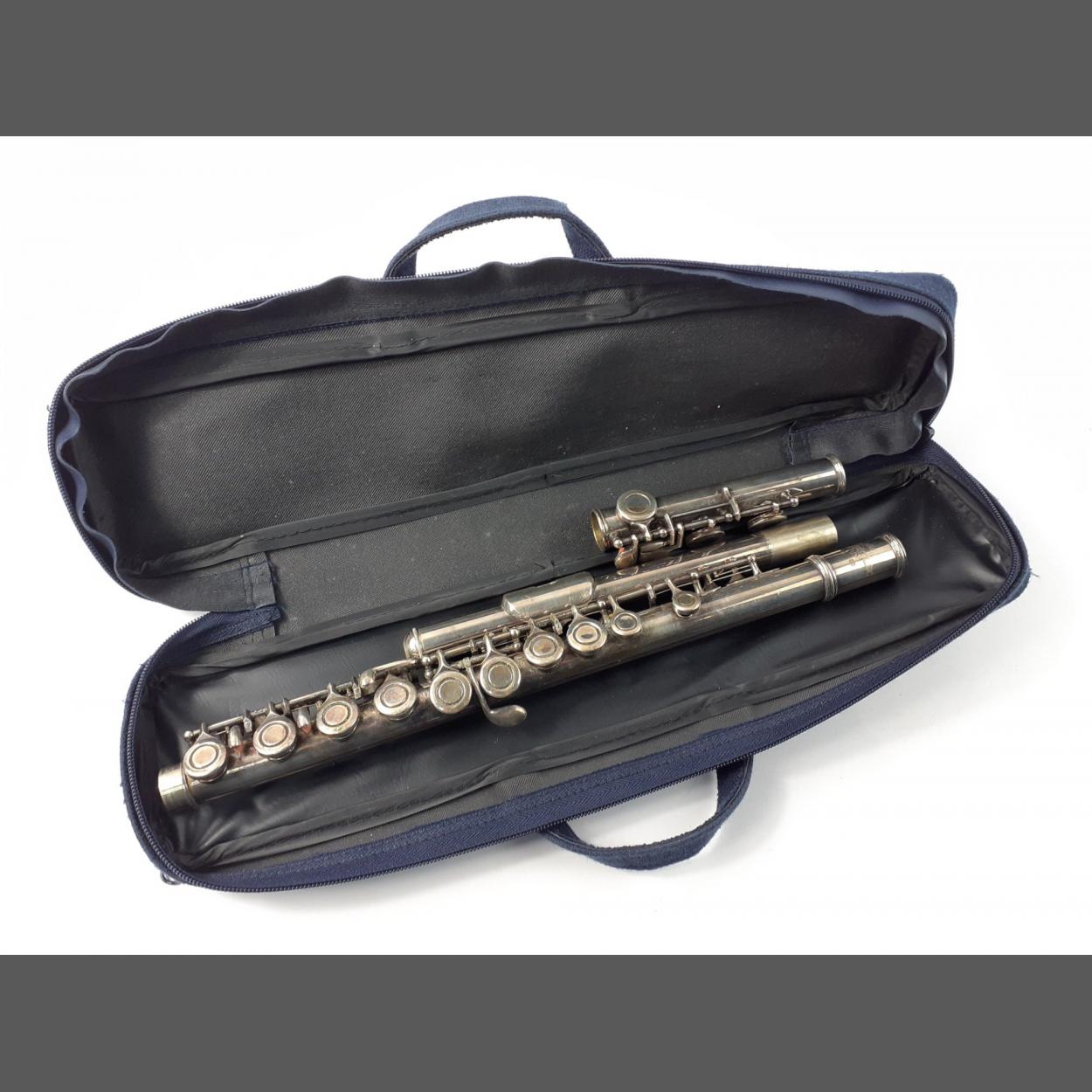 An unbranded aluminium concert flute stamped 16100189 in soft carry case
