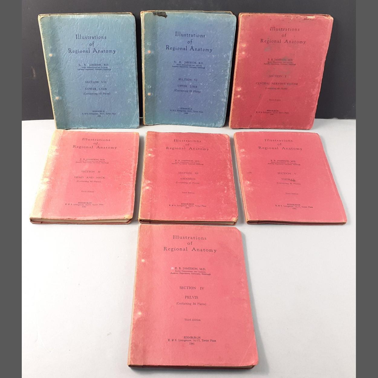 Of historical medical interest - Sections I - V of the ILLUSTRATIONS OF REGIONAL ANATOMY by EB JAMIESON, third edition published in 1941. Plus section VI and VII of the 1936 edition. All with original colour plates, in fair condition