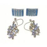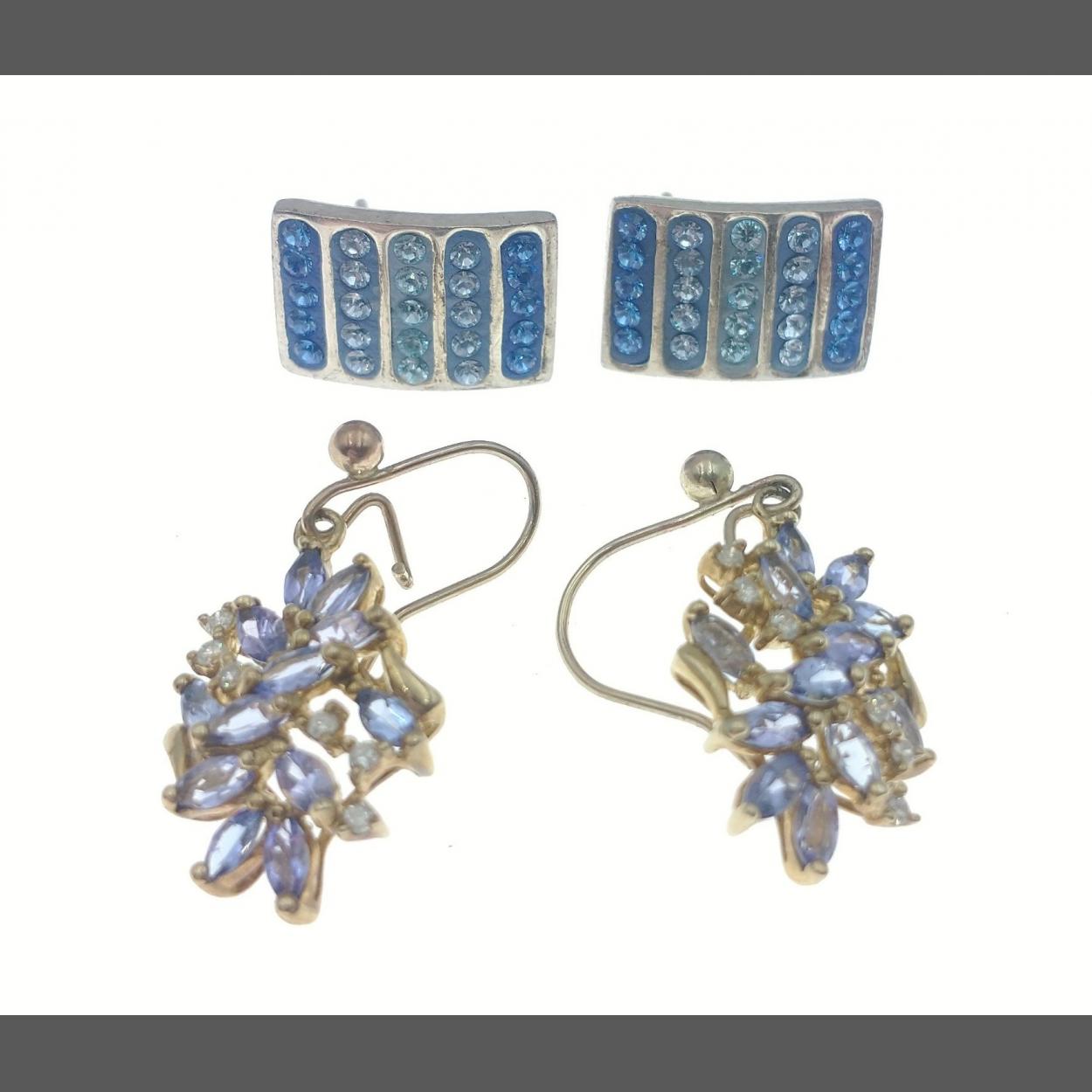 A pair of silver 925 stamped earrings with blue coloured stones with also a pair of unmarked yellow metal fine quality tourmaline and diamond studded floral style earrings, gross weight 2.88g approx