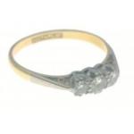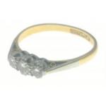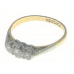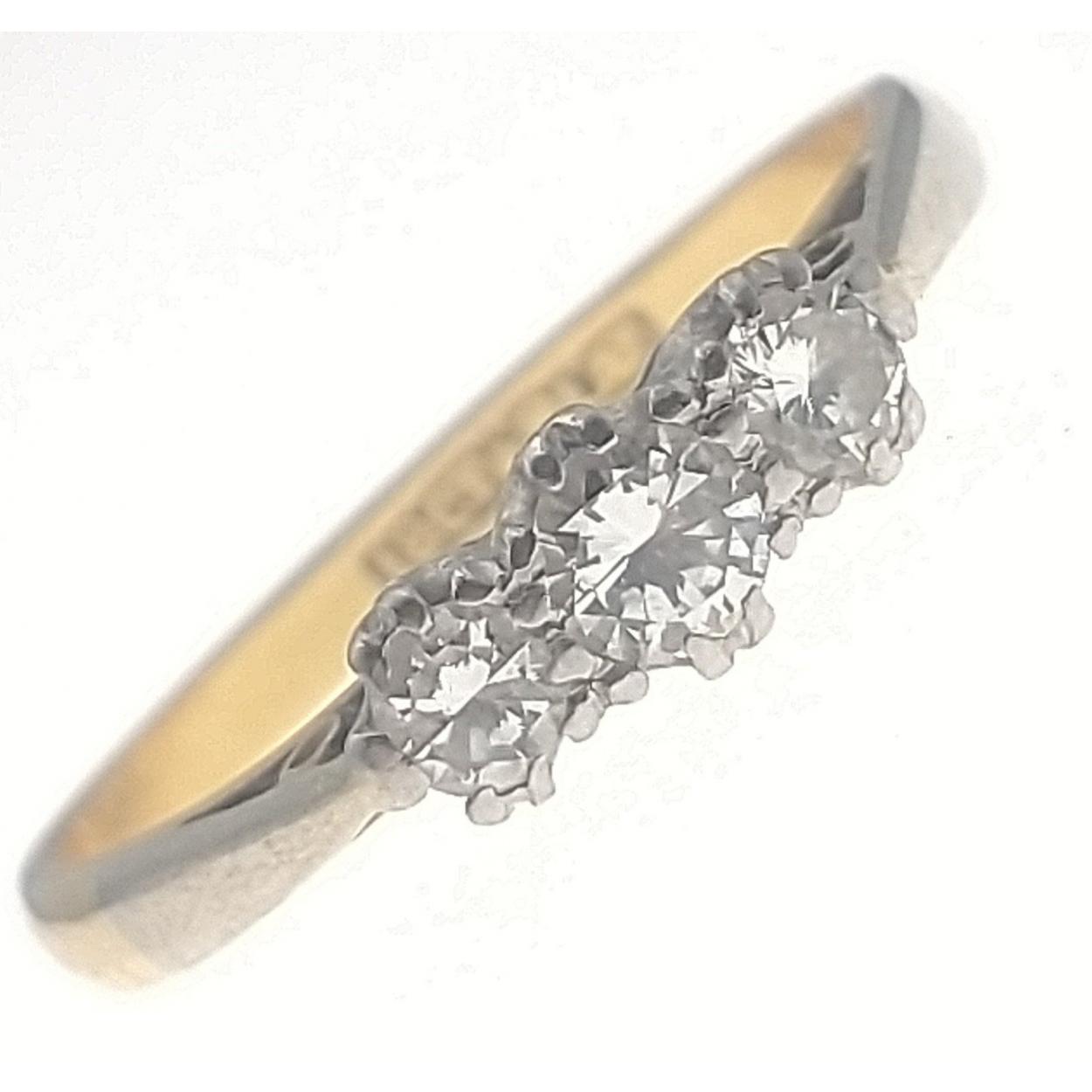 A TRIO OF DIAMONDS 18c stamped ring size P/Q - three diamonds (tested) all three diamonds dimension 3mm approx diameter - gross weight 2.60g approx