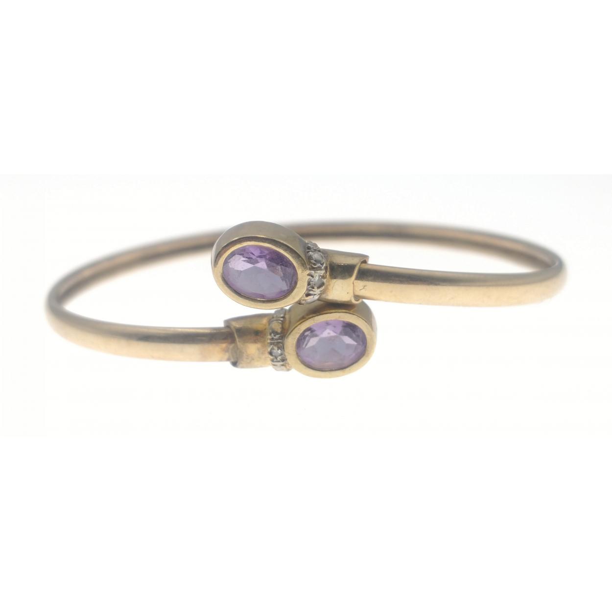AN ASTOUNDING AMETHYST double oval-shaped amethyst bangle, each stone 9mm x 6mm approx with supporting clear stones, internal dia 6cm approx, gross weight 7.05g approx