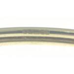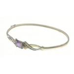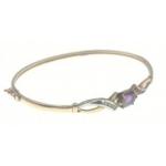 A 375 stamped white and yellow gold snap-shut bangle with a large oval amethyst (8mm length x 5mm width approx), flanked by clear stones, internal dia 6cm approx, gross weight 4.29g approx