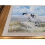 Three country pictures including 2 small pictures of sheep by MARJORY STEPHENSON and the larger ploughing scene by M MATTHEWS (58x46cm approx)