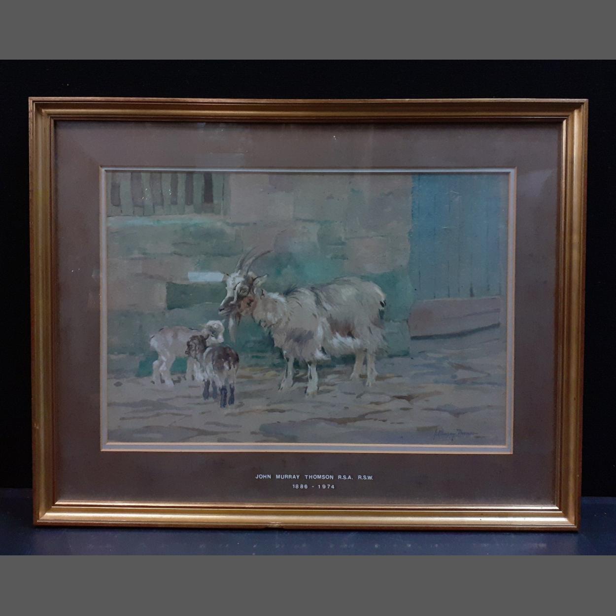 A JOHN MURRAY THOMSON RSA RSW (1886-1974) Goat with kids. Frame size 65x51cm approx