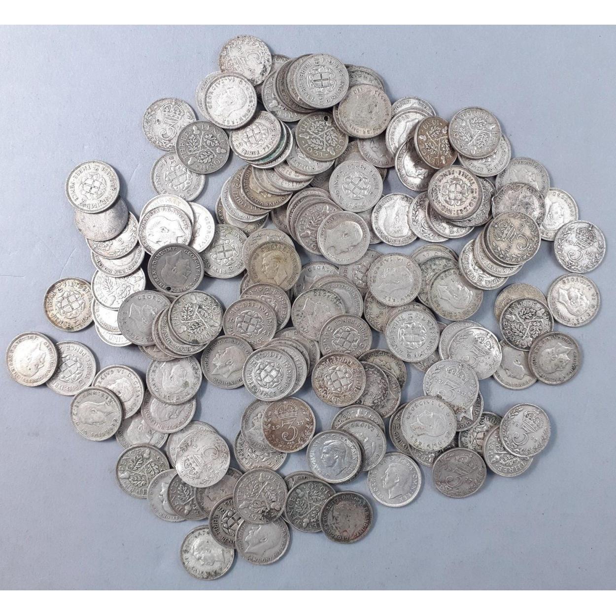 A collection of pre-1947 silver threepenny coins, gross weight 222g approx