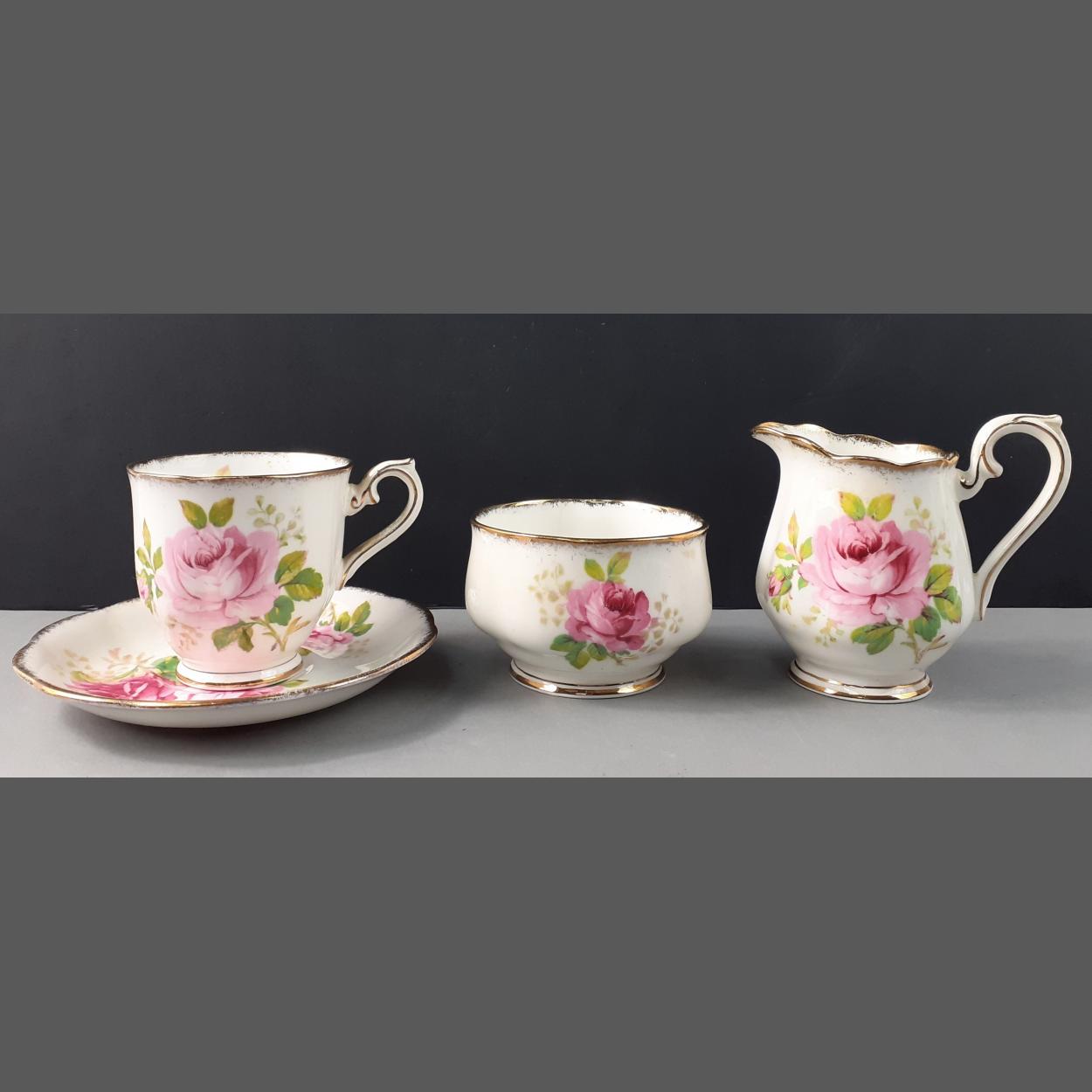 Tea for one - ROYAL ALBERT American beauty, cup, saucer, sugar and cream