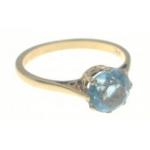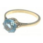 A 9ct stamped yellow gold large set AMAZING AQUAMARINE ring - aquamarine dimensions 8mm diameter x 3mm depth approx - ring size L - gross weight 1.85g approx