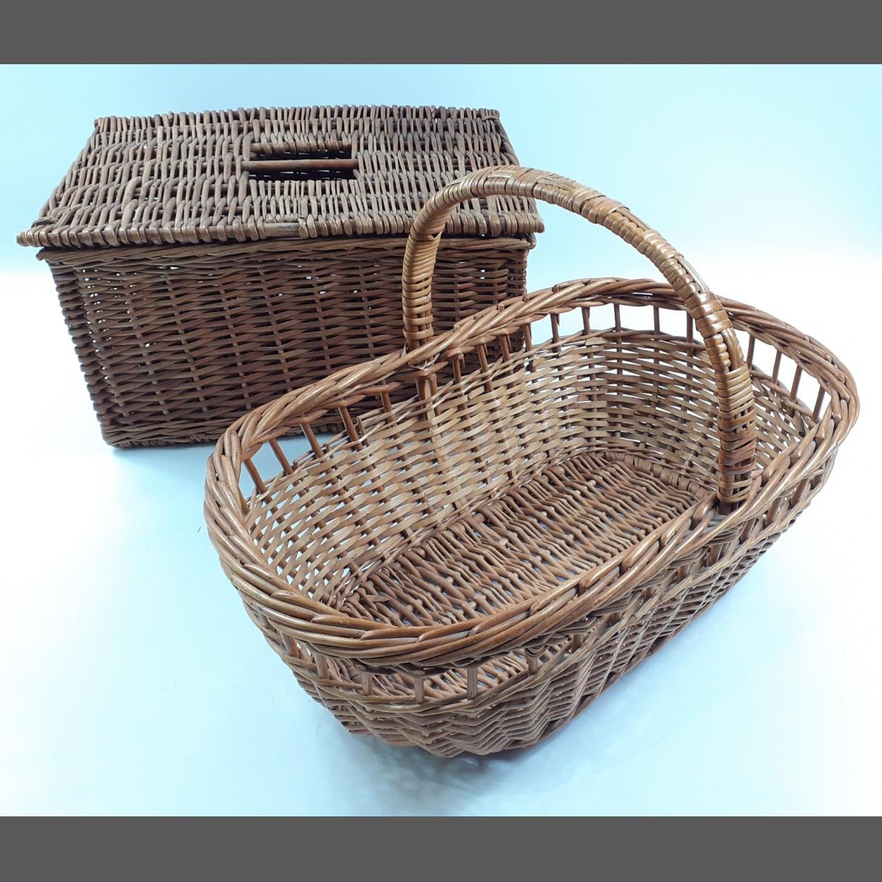 Wicker's World - a picnic basket 45x32x24cm approx and a very nice single-handed shopping basket 53cm across approx