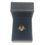 A STUNNING multi-faceted grossular garnet oval shaped stone set in a 375 stamped yellow gold ring, ring size O - gross weight 3.18g approx