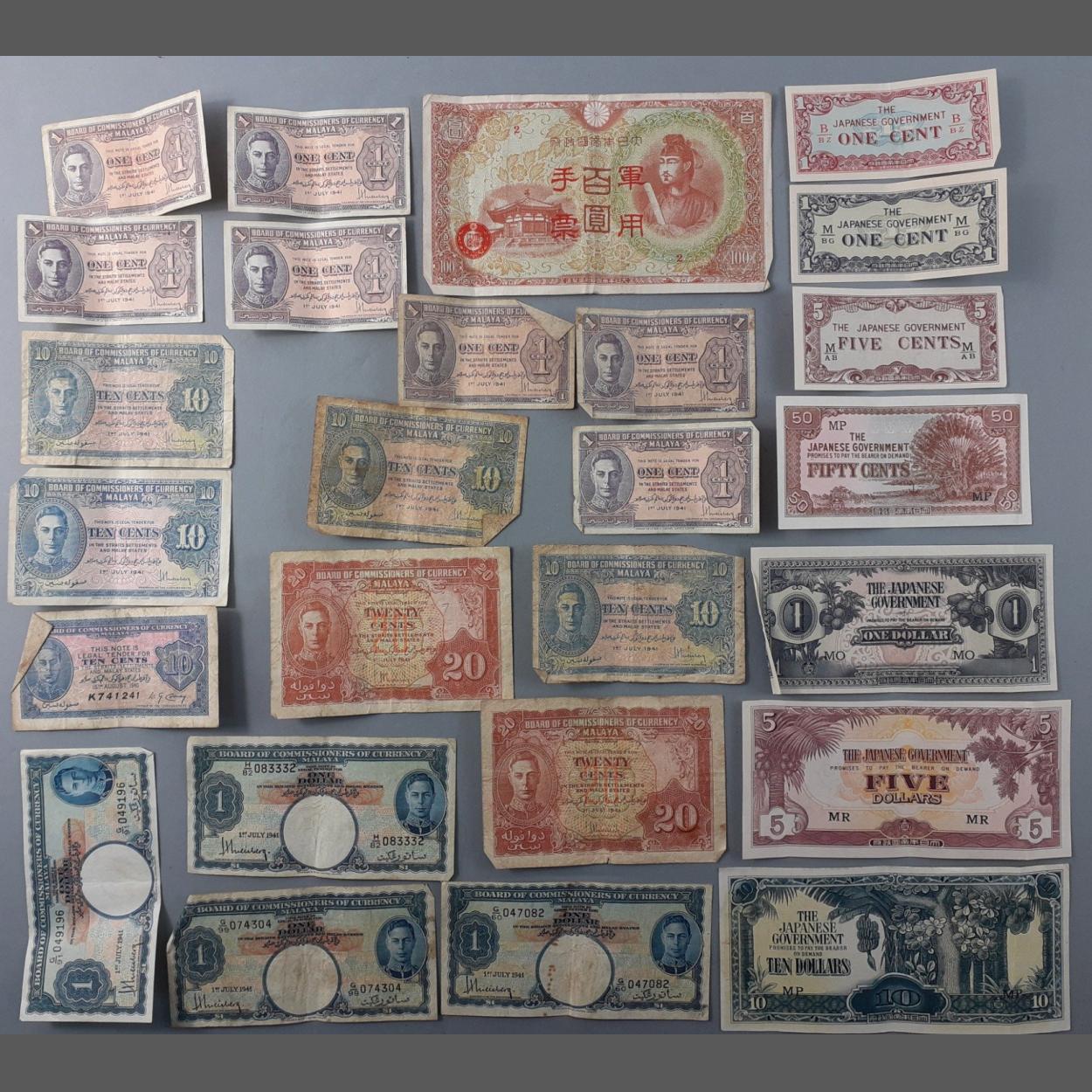 A quantity of Japanese currency to include Japanese government occupation money and also mainly pre-war and wartime Malaya banknotes in low grades but an interesting lot