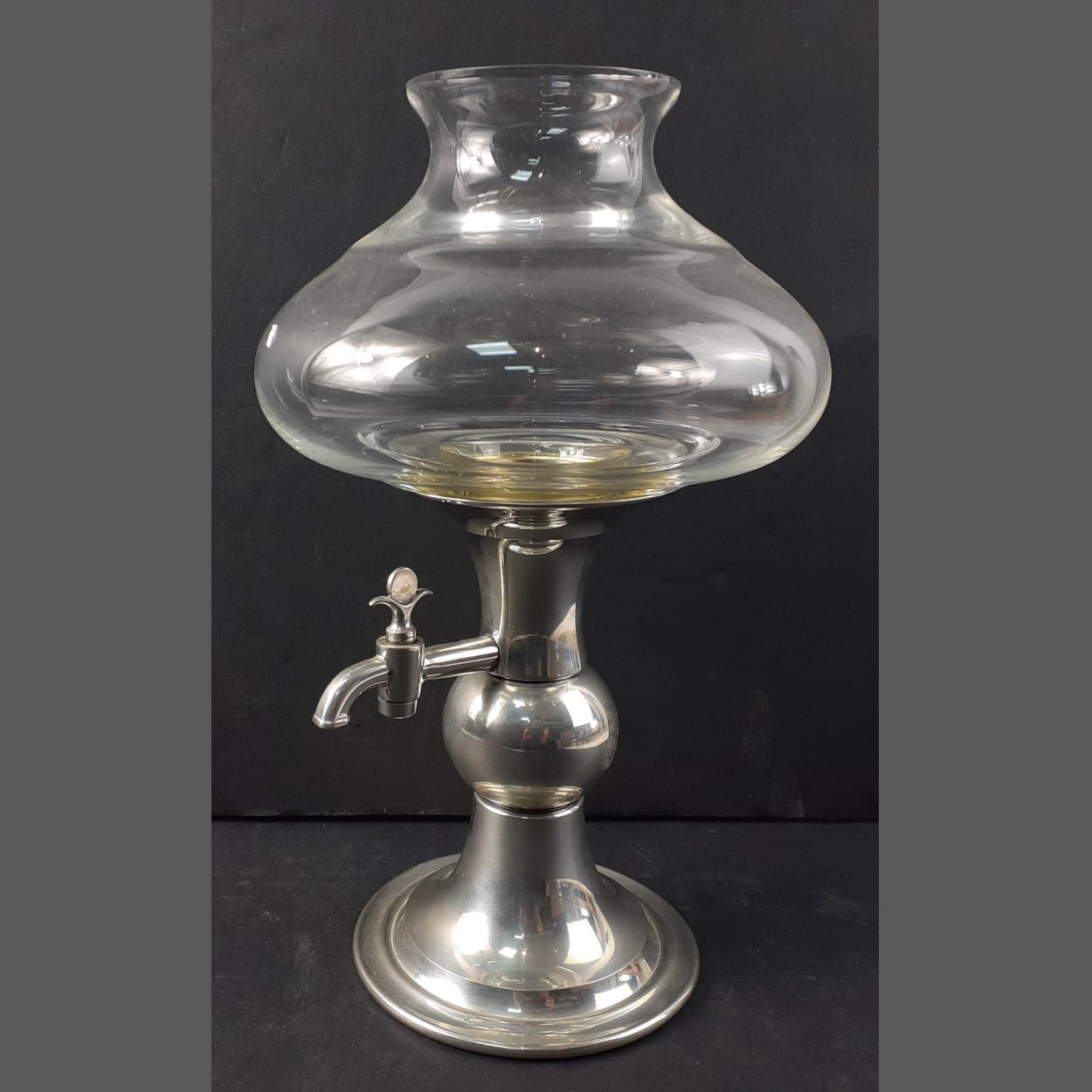 A rather lovely pewter and glass French drinks dispenser by LES ETAINS DE FRANCE, 95% pewter, stands 30cm tall. No damage. Lovely object