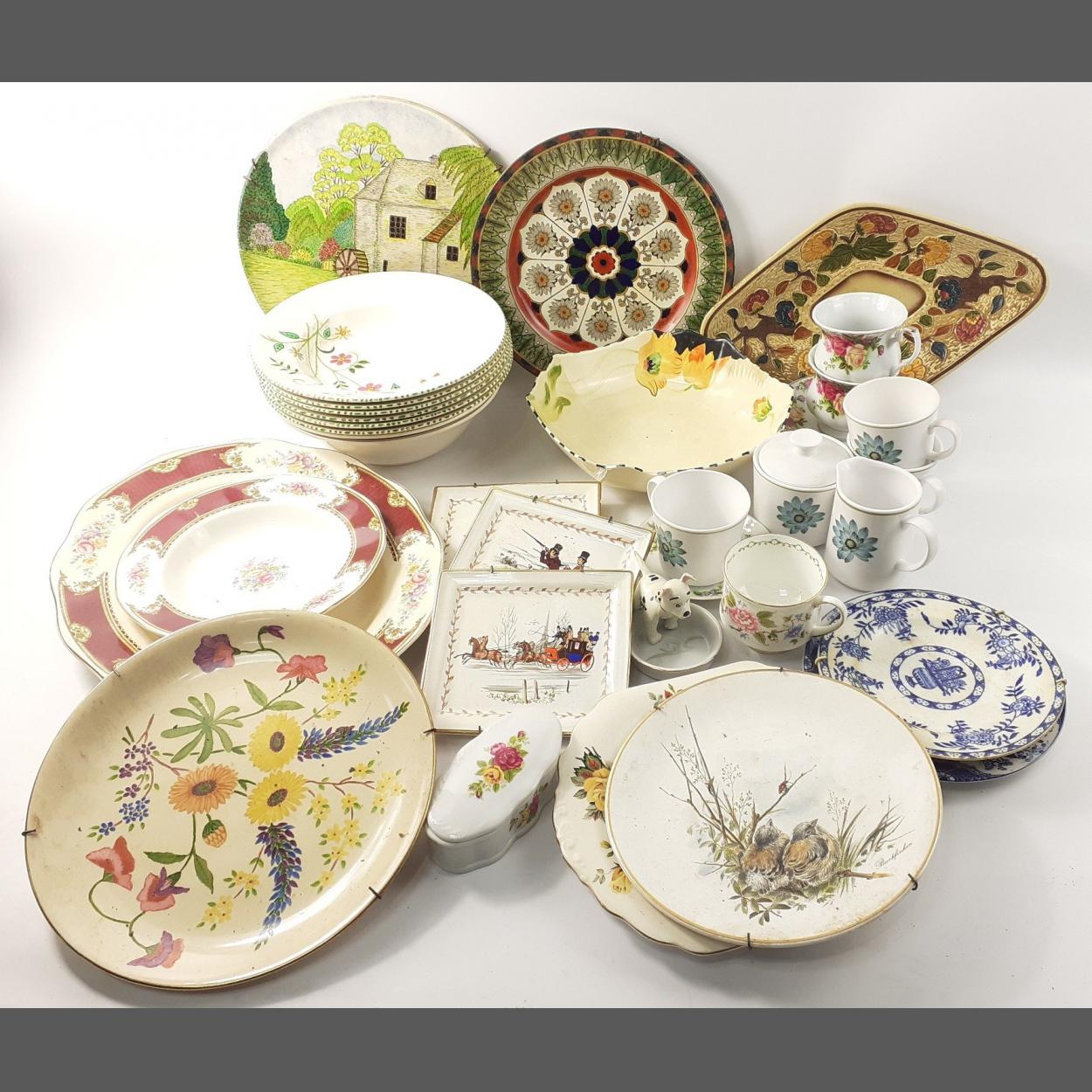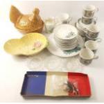 All proceeds to charity - a large mixed lot of ceramics to include various part tea sets, decorative plates, chicken egg basket (damage to tail), Crown Devon bowl, Crown Clarence ware etc