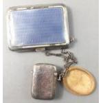 An ANTIQUE small enamelled silver hallmarked card case in poor condition, Birmingham 1911 and a silver Vesta - gross weight 85g approx