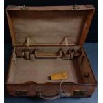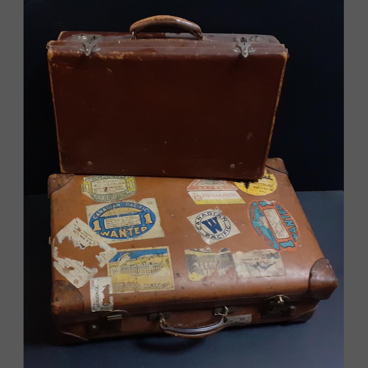 One vintage suitcase with fitted interior plus many interesting world wide travel stickers, including CANADIAN PACIFIC, NYK LINE, IMPERIAL HOTEL TOKYO, JAPAN and many others 60x38x21cm approx. Plus one other smaller case