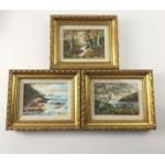Three framed and glazed oil paintings initialled JBW. Two of coastal scenes and one of a country scene. Frames measure 20x16cm approx