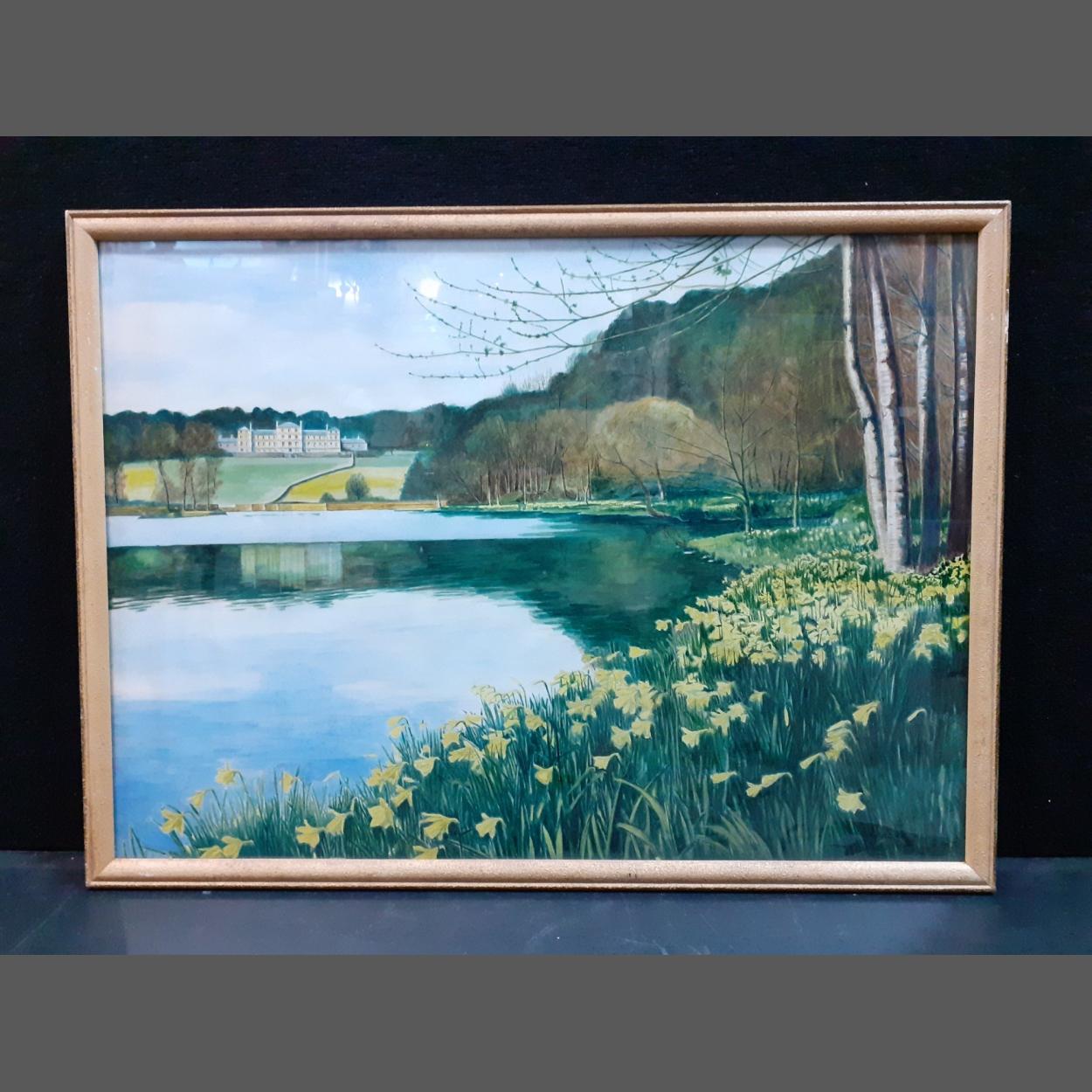 A restful watercolour of daffodils at Mellerstain, indistinct signature 63x47cm approx