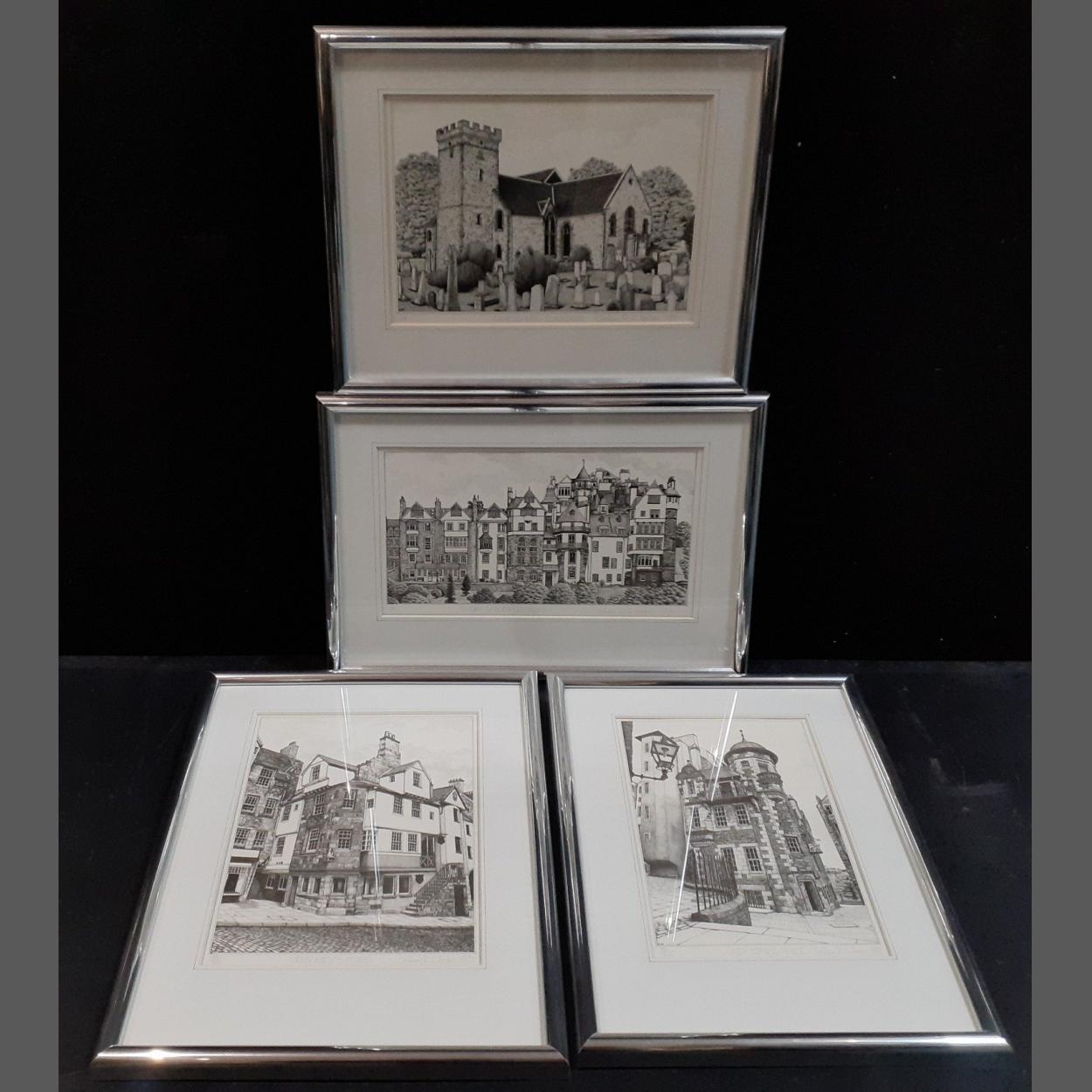 A set of four prints by GRAHAM RC FORBES signed in pencil to include John Knox's House 1985, Ramsay Garden 1984, Lady Stair's House 1984 (limited edition 185/300), and Cramond Kirk 1984, each frame measures 33x26cm approx