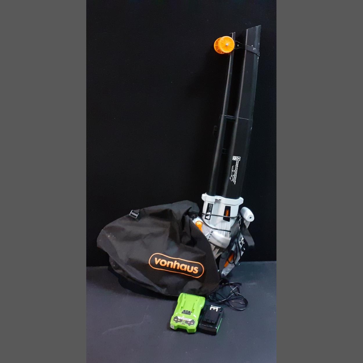 A brand new almost (used only twice) electric VONHAUSE garden blower and vacuum complete with large collection bag