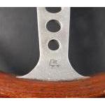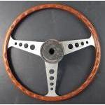 A wood classic steering wheel. Three spoke marked LL. Straight with no cracks.